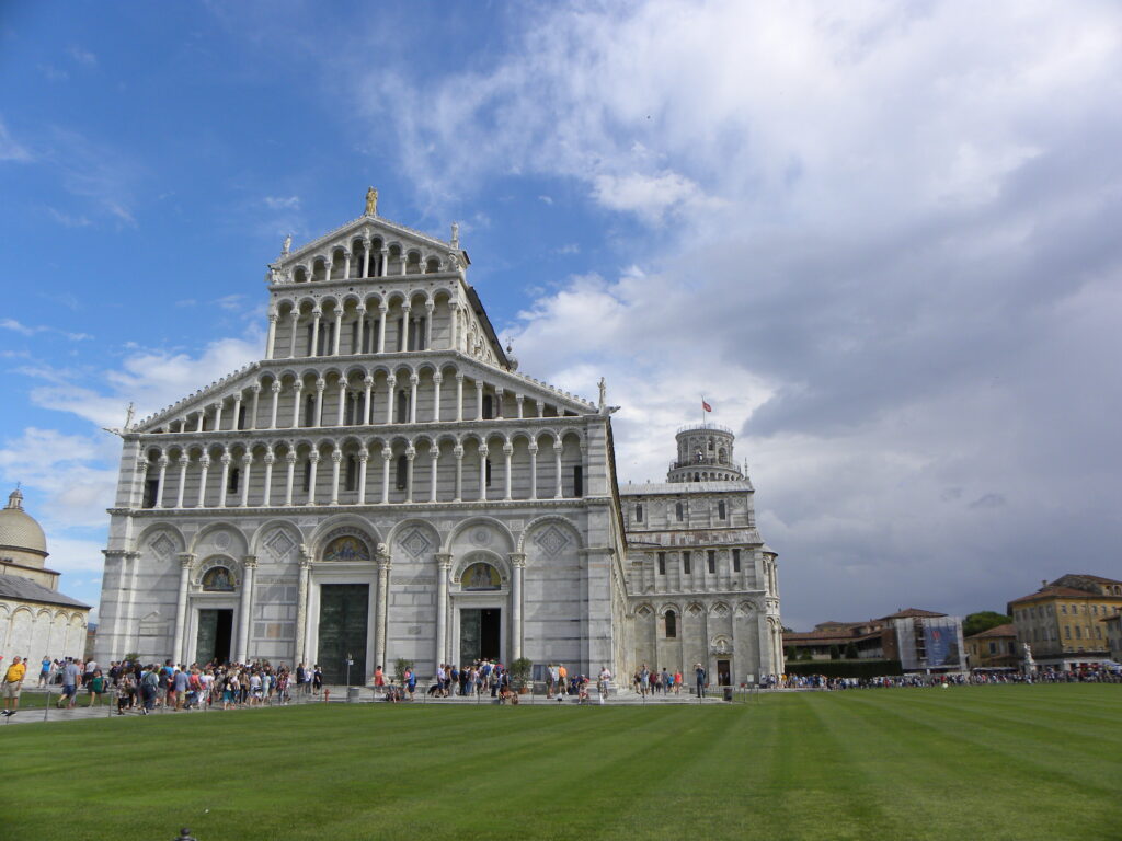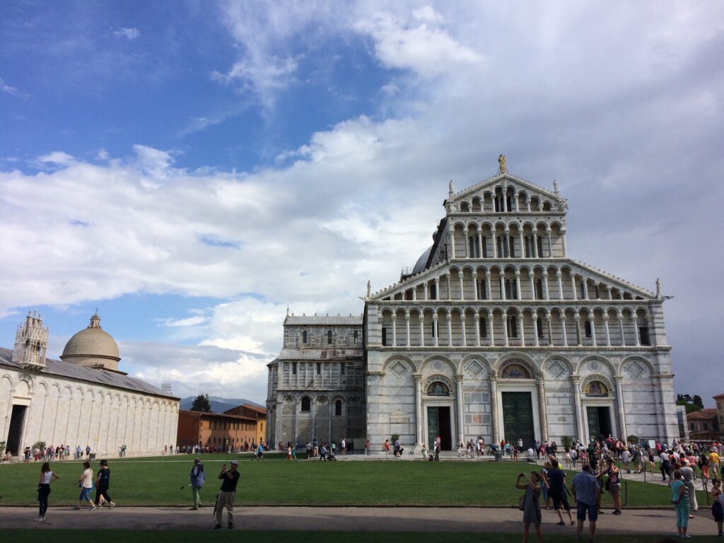Another important landmark in Pisa is the Cathedral of Pisa, also known as the Cathedral of Santa Maria Assunta. The Cathedral is a beautiful example of the Pisan Romanesque style, and it is known for its striking marble façade, as well as for its beautiful interior, which contains many works of art, including frescoes by the Pisan master Cimabue.